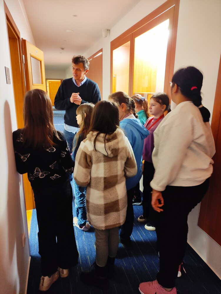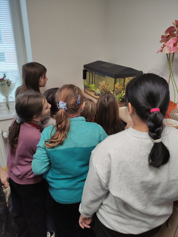Následovala prohlídka celého obecního úřadu. Tady dívky nejvíce zaujaly dvě věci – kamerový systém a akvárium s rybičkami .