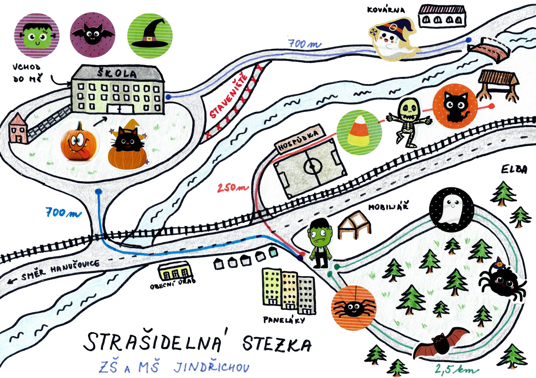 Už tento pátek se chystá odpoledne plné strašidel. Některá vás trochu postraší, jiná pobaví. Mnohá z nich mají pro vás připravený úkol. Než se vydáte na stezku, zastavte se, prosím, u školy, kde zaplatíte startovné a vyzvednete si mapku s popisem jednotlivých stanovišť. Před cestou se můžete posilnit v naší školní jídelně. O vaše občerstvení se postarají paní kuchařky. V nabídce bude kafíčko, zákusek, hranolky, hamburger, tortilla, řízečky a další. Na školní zahradě máte možnost si vyzkoušet zdobení dýní a v prostorách MŠ na vás čeká tvoření. Poté se můžete vydat za dobrodružstvím. Nemusíte projít všechna stanoviště, sami si zvolíte trasu, na kterou vám síly stačí. Pokud se chcete bát, vyrazte na část stezky, která vede lesem, až při setmění. Nezapomeňte, prosím, na teplé oblečení, vhodnou obuv a baterku nebo čelovku.