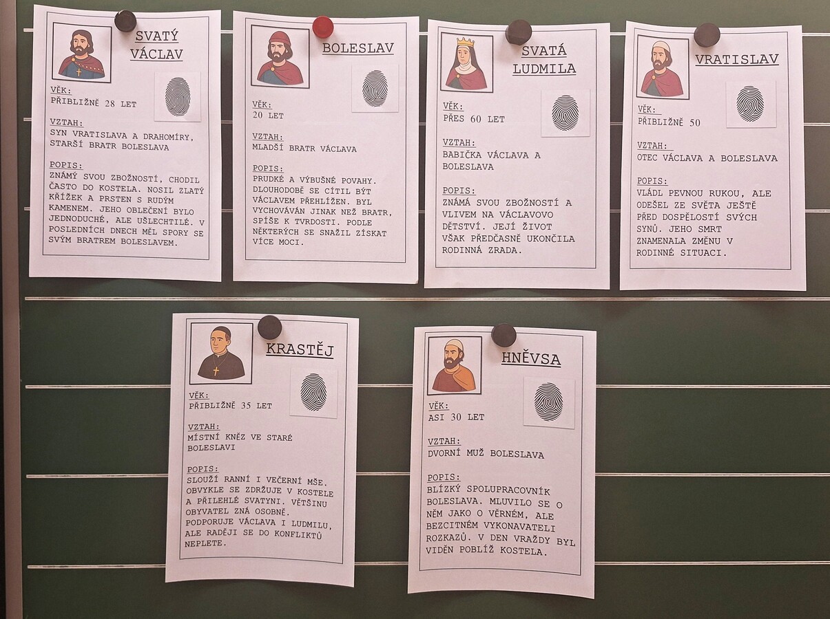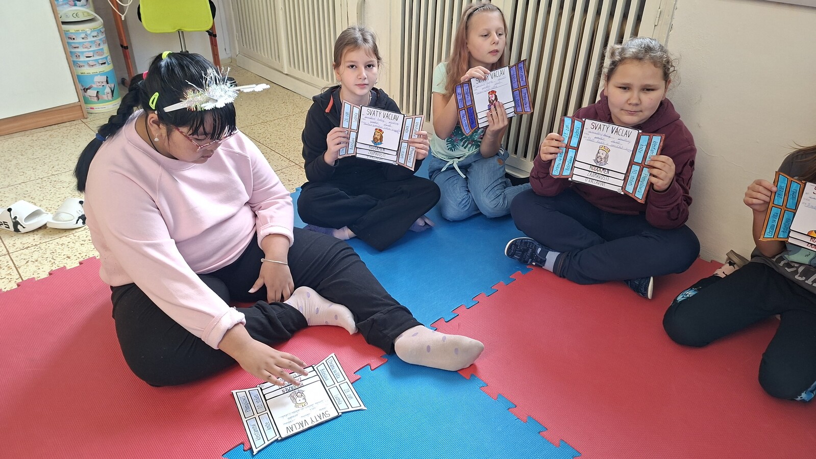 V první třídě se děti seznámily s legendou o svatém Václavovi, obrázek Václava si vymalovaly a také si vyrobily „Svatováclavskou korunu“, která je součástí českých korunovačních klenotů. Na závěr se společně vyfotily i s naším malým Václavem na koni. Třeťáci zase vyšetřovali vraždu, která se udála roku 935 ve Staré Boleslavi. Kolem „těla“ našli spoustu důkazů, které je přivedli nejenom k „objednavateli“ vraždy, ale i k samotnému vrahovi. Během vyšetřování děti zjistily i rodinné vazby v rodině svatého Václava a také to, jak se tenkrát žilo. Všichni měli obrovskou radost z toho, že případ vyřešili.