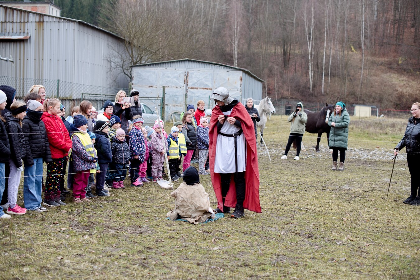 Minulý týden byl na jindřichovské škole a ve školce zasvěcen svátku svatého Martina a tradicím s tím spojenými. Ve vyučování si děti o tomto svědci povídaly, zpracovávaly pracovní listy a třeba i hledaly mezi svými spolužáky ty, kteří mají podobné vlastnosti jako svatý Martin. Ve výtvarné výchově nebo ve družinách vyráběly pro Martina koně pomocí kterého se snažily Martinovi „naznačit“, že by mohl poslat trochu sněhu.❄️ Dokonce se zapojily i paní kuchařky, které na oběd ve středu nachystaly pečenou kachnu s červeným zelím a bramborovým knedlíkem (husa nebyla v dostatečném množství k dispozici). 🍽️ Vše vyvrcholilo ve čtvrtek, kdy se prakticky celá škola i se školkou vydala podívat na živé ztvárnění záchrany žebráka svatým Martinem před umrznutím. Velké poděkování patří nejen všem dětem za zapojení do aktivit, ale i paním učitelkám za organizaci aktivit, paním kuchařkám za vynikající svatomartinský oběd a paní Gaľové a jejím synům za krásnou ukázku historické události.👍🤗
